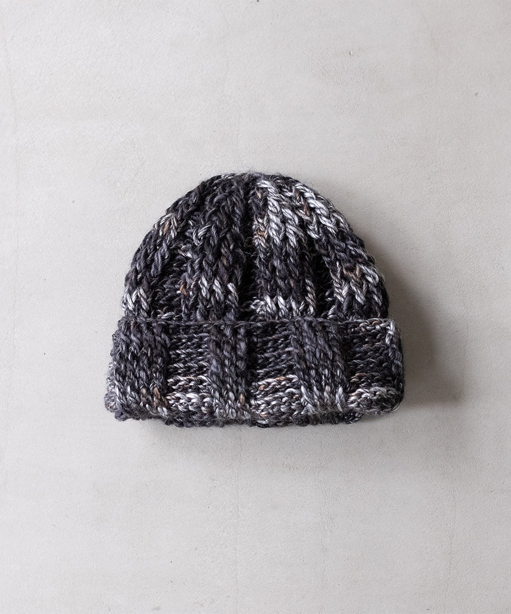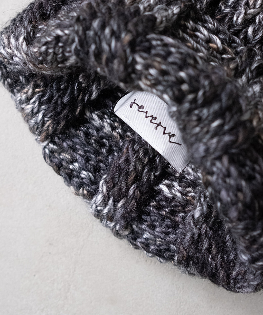 <<商品説明>>reverve (リバーブ)のハンドニットキャップ。ミックスカラーの毛糸を手編みで編んだ、メランジカラーのニットキャップです。柔らかな被り心地です。