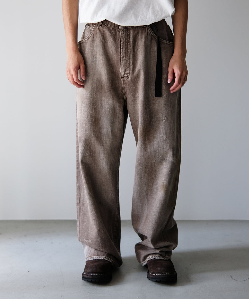 <<商品説明>>ANCELLM(アンセルム)のデニムパンツ。程よくテーパードし、クッショニングある柔らかなワイドシルエット。マーブル調のブリーチに、不均一なダメージ加工、ANCELLMらしい一作です。