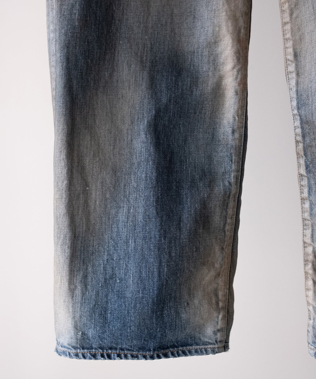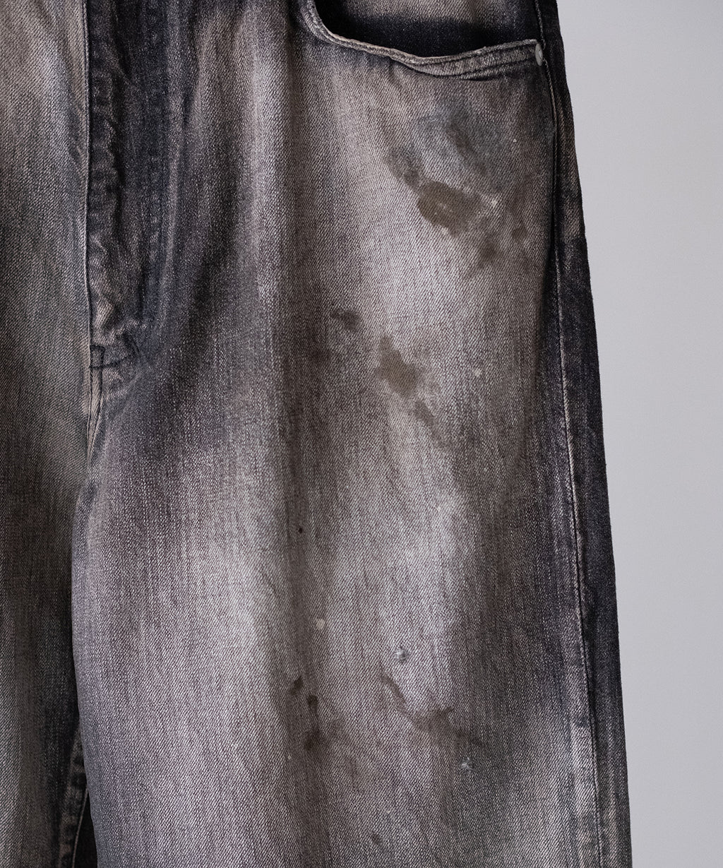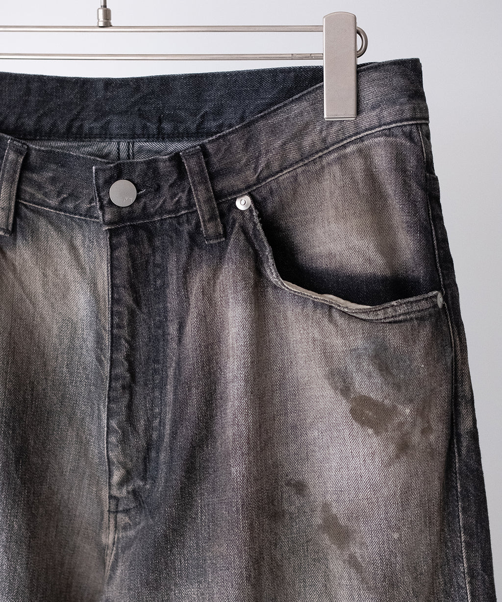 <<商品説明>>ANCELLM(アンセルム)のデニムパンツ。同ブランドらしい不均一でデザイン的な加工がなされた一本。