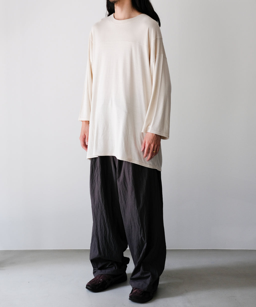 <<商品説明>>marka (マーカ)の7部袖のアスレチック由来のデザインTee。シルクネップで編み立てられた天竺で製作されており、ハリのないクッタリとしたルーズなシルエットです。ネップが肌離れよく、パイルの様な柔らかな着心地です。<<生産国>>日本<<その他>>※商品画像は自然光にて撮影しています。デバイス環境等により色差がある場合が御座います。予めご了承下さいませ。※ショップガイドを必ずご確認くださいませ。