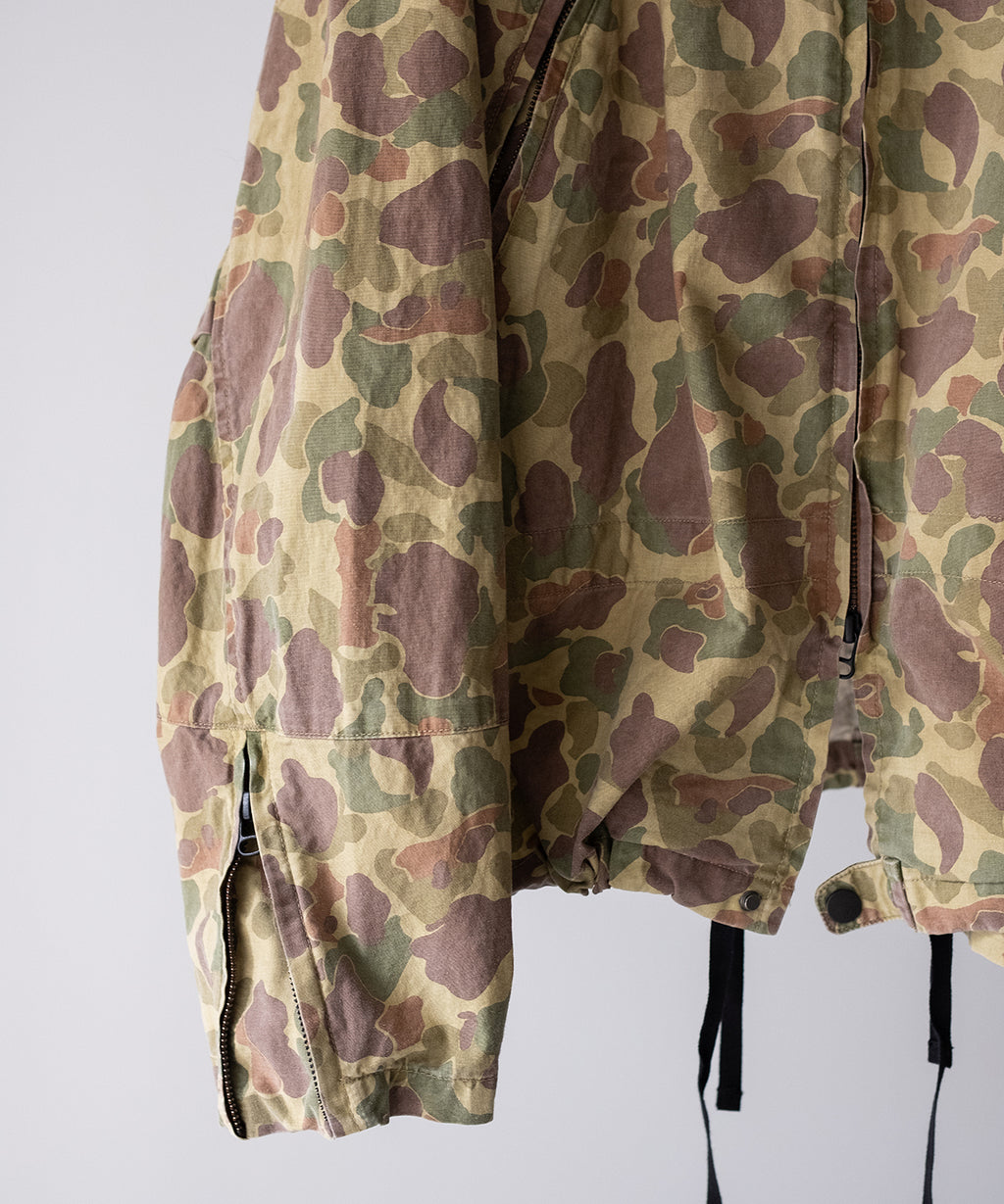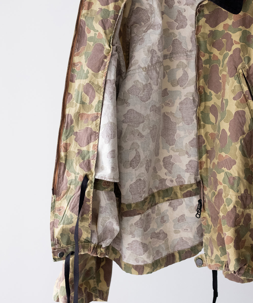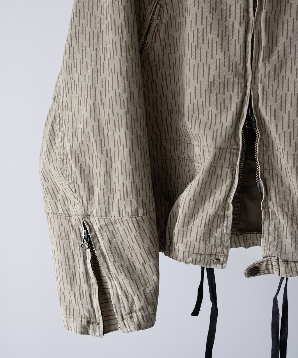 <<商品説明>>ANCELLM(アンセルム)のジップブルゾン。迷彩とレインカモ、それぞれに表現すべく加工がなされてます。ボクシーシルエットのリラックスした着心地です。