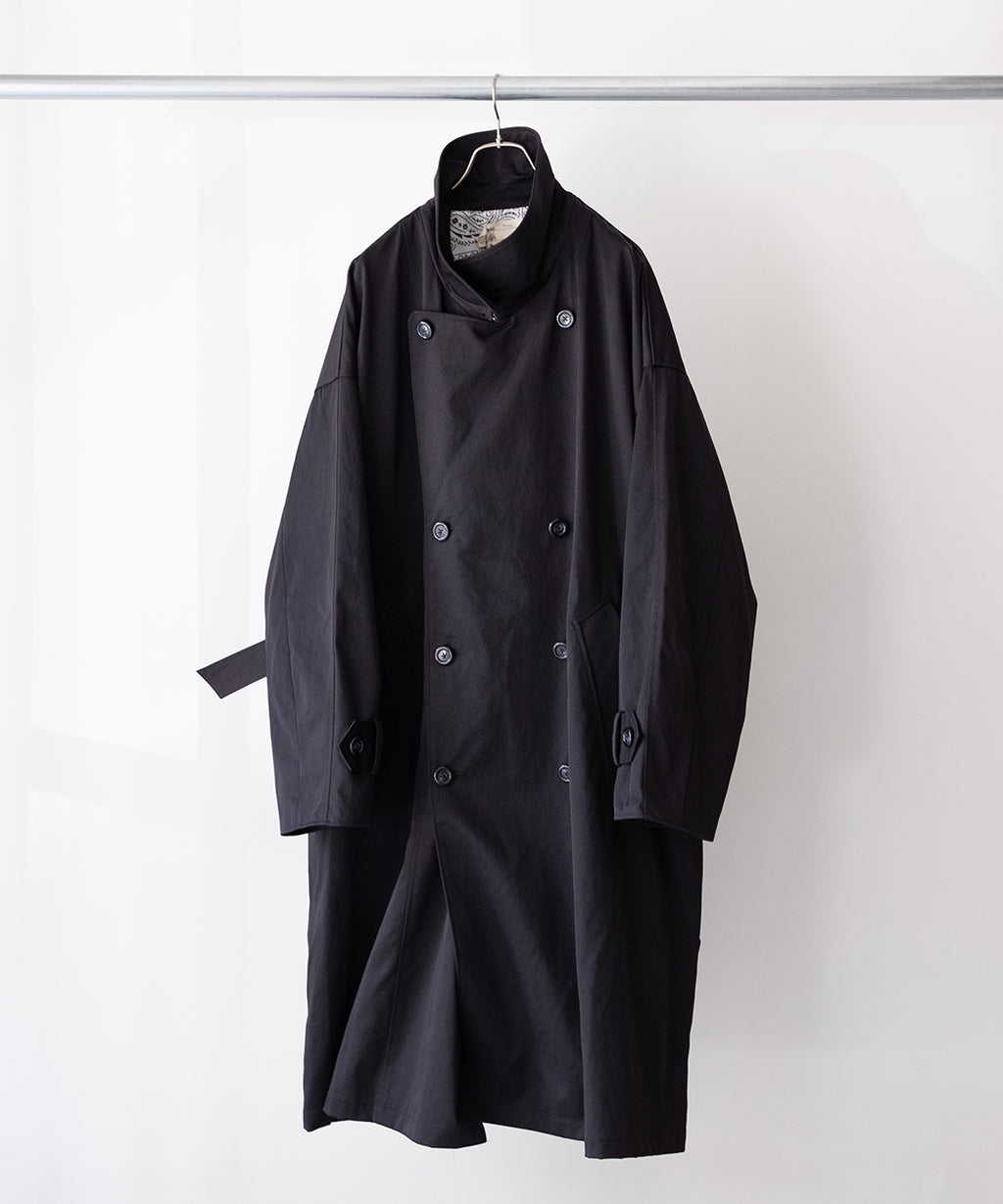 <<商品説明>>77circa(ナナナナサーカ)のトレンチコート。カバンに使われるような硬いミリタリーナイロンタスランで作られ、大判のボリューム感あるサイズ、シルエットです。裏地には、古着のバンダナがあしらわれた同ブランドらしいアクセントです。
