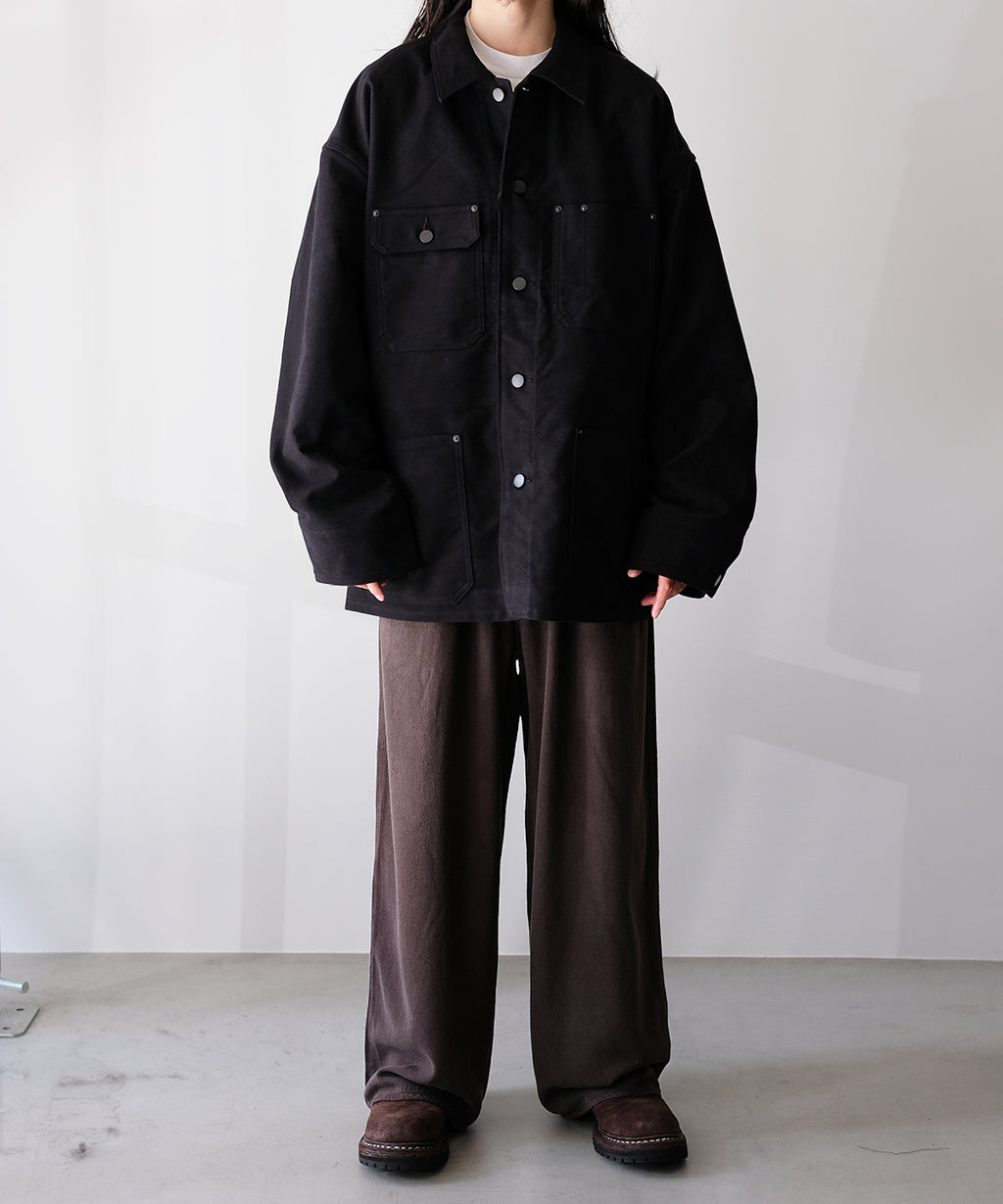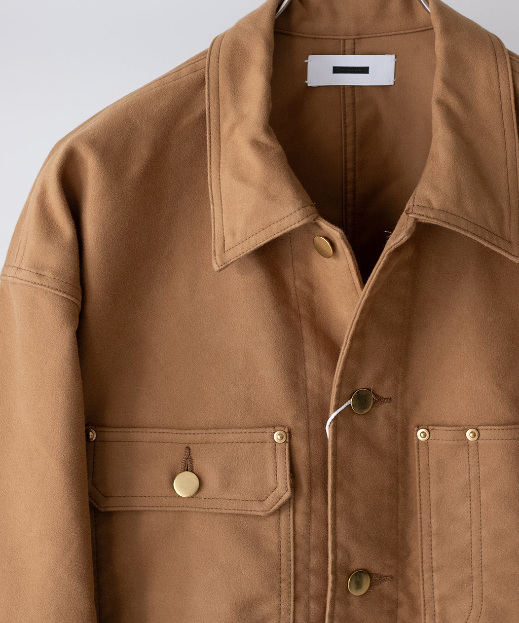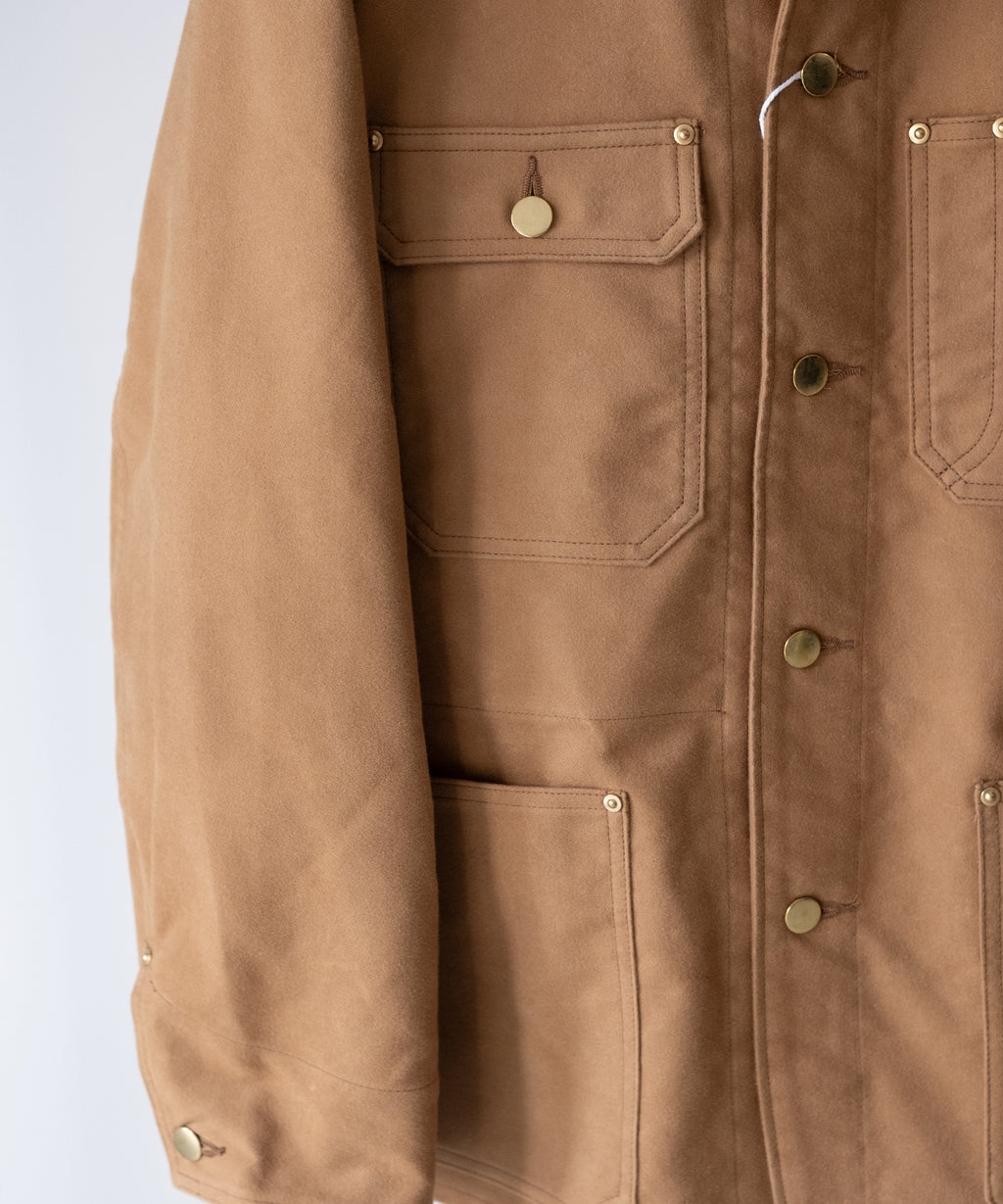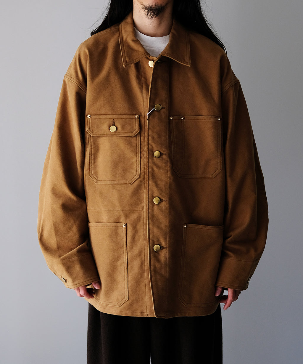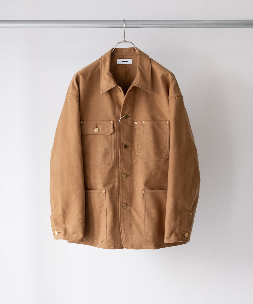 <<商品説明>>REVERBERATE (リバーバレイト)のカバーオール。ゆとりあるパターン設計ながらも、収まり良いフォルムをしたリラックスシルエット。細かに起毛をかいた、程よい照りのあるモールスキンで作られています。ボタンの仕上げも上品目に採用しつつ、経年変化も想定した風合いが育つフィニッシュとなっています。