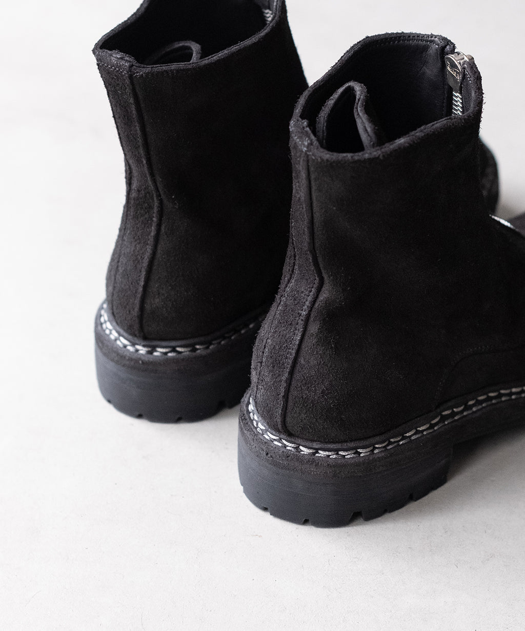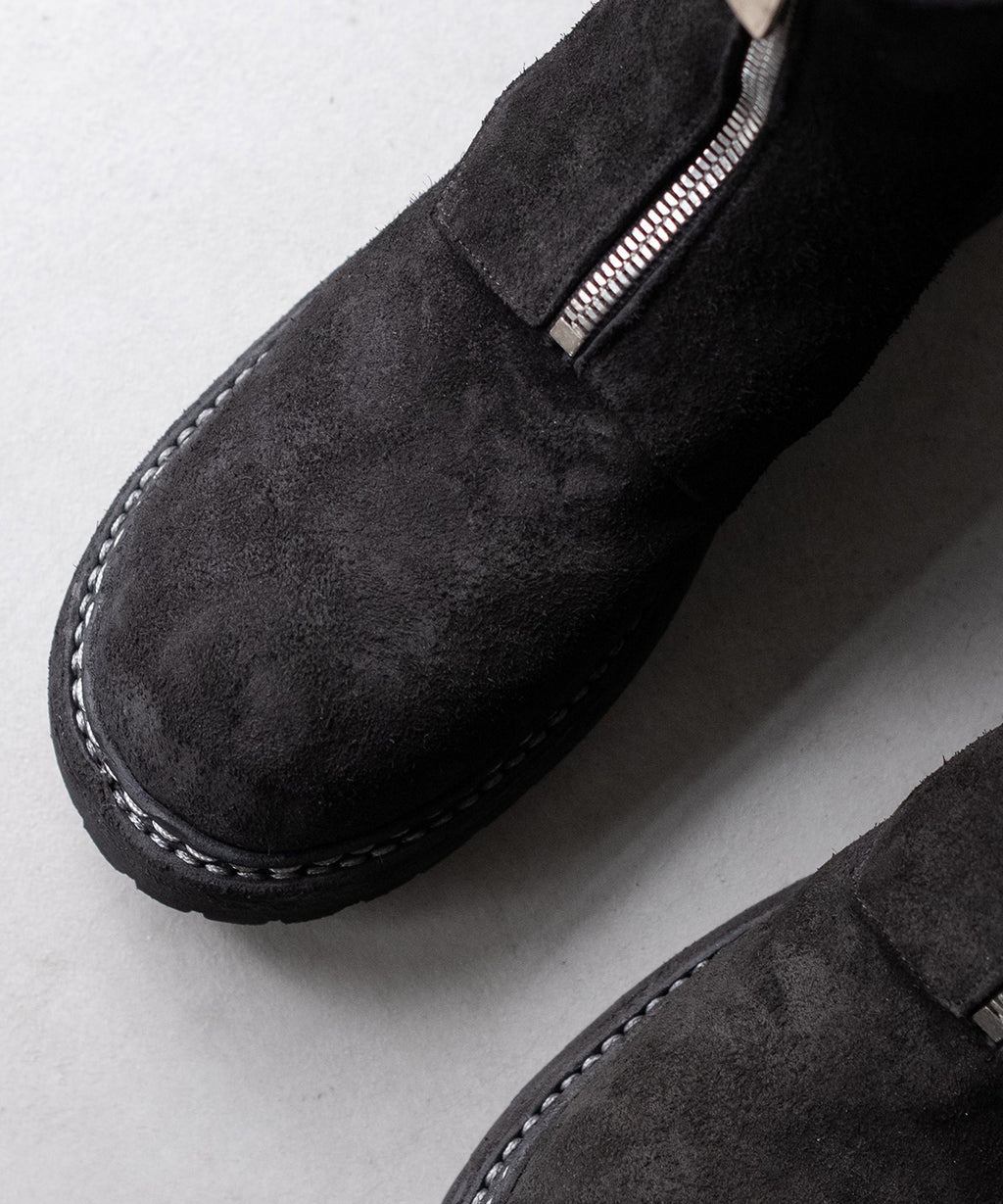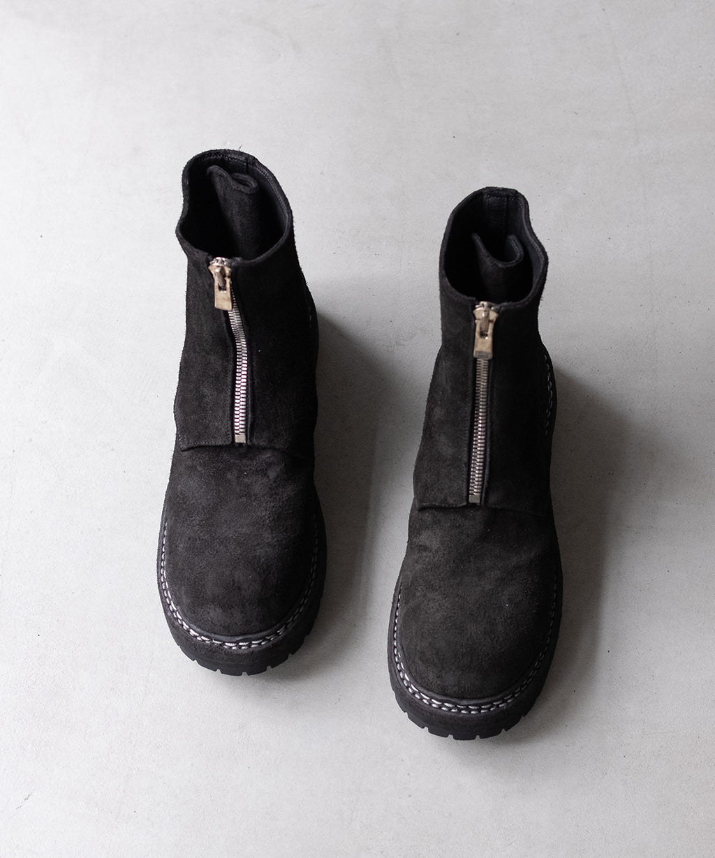 <<商品説明>>GUIDI(グイディ)のジップアップブーツです。ラウンドトゥ、ノンスリップソール、低い太めのブロックヒール、ウェルトの重厚感あるルックス。本作は、ホーススウェード。仕上げは製品染めです。8号ファスナーの重厚と上品の共存など、ルックスのそれは抜群で、印象に残ります。他、雰囲気を重視したい為、割愛します。商品の特徴や、サイズ選び、メンテナンスなどは、以下の"お問い合わせ"にて承ります。【商品についてのお問い合わせ】