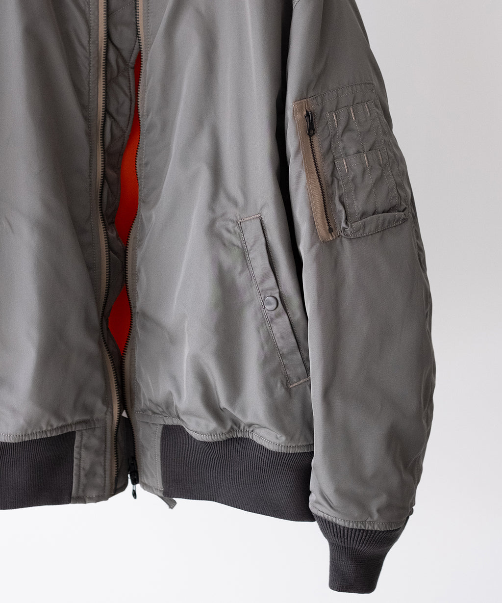 男臭さあるディテール、色味ながらも、シルクのラグジュアリーさの際立った同ブランドの素材遊びと本気を感じられる一作です。