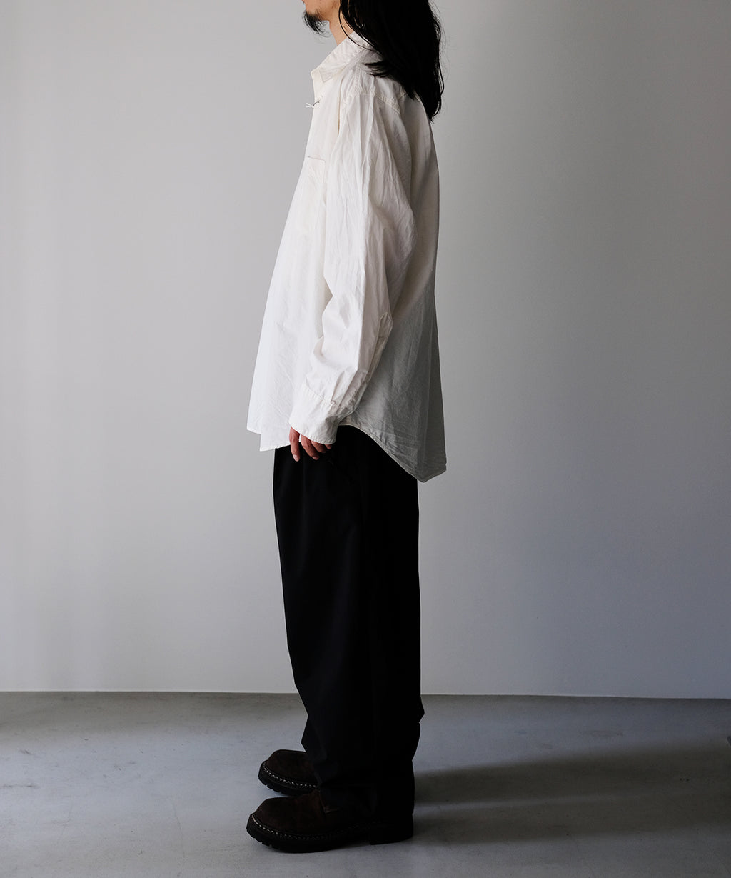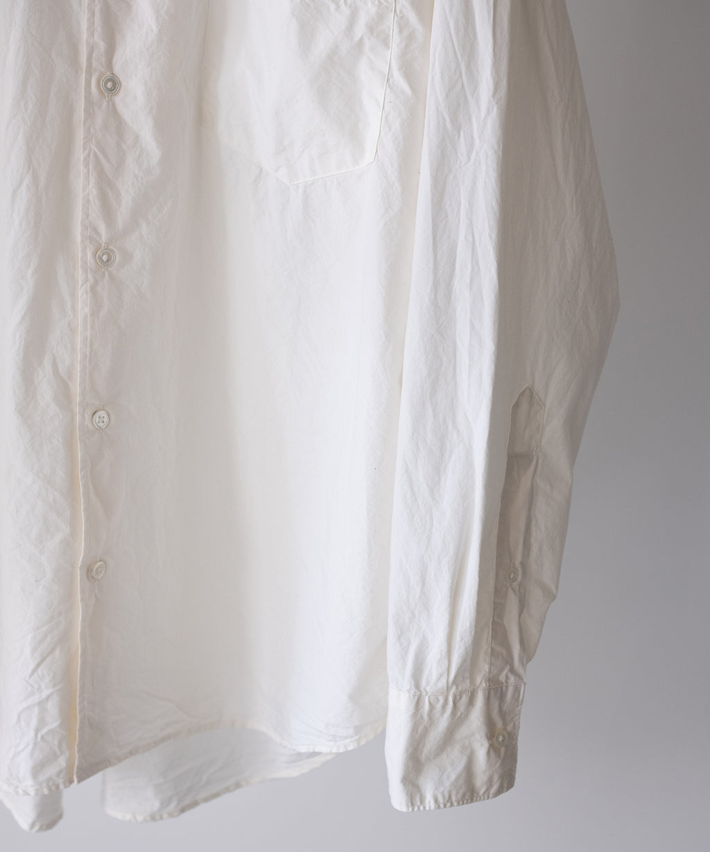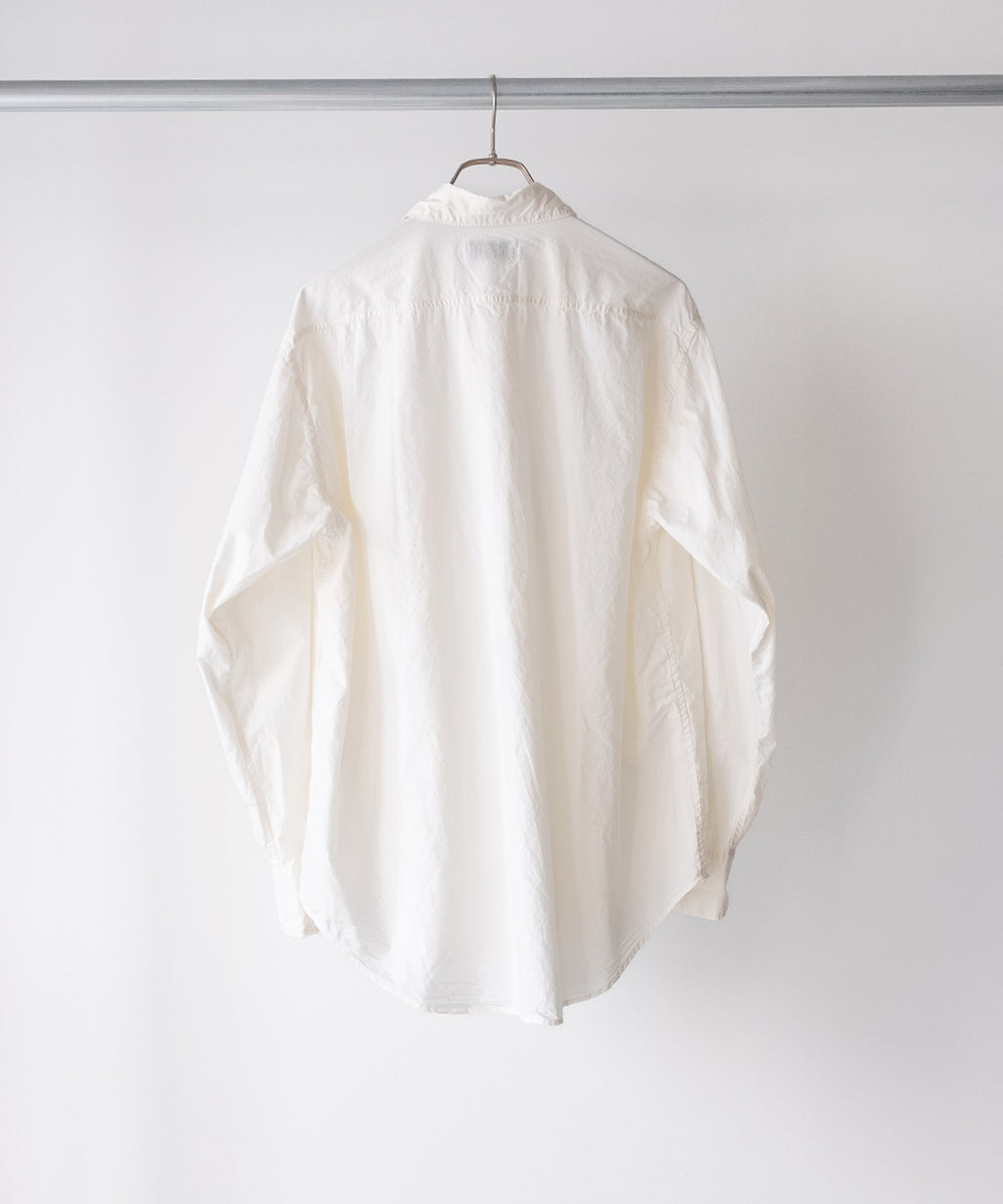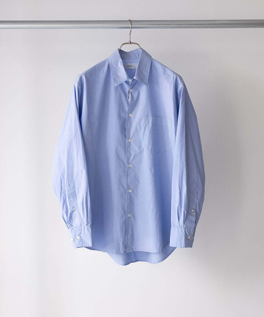 <<商品説明>>marka (マーカ)のレギュラーカラーシャツ。程よくリラックス感があり、汎用性あるサイズ感です。オーガニックコットンとシルクをブレンドした糸で織り上げられたタイプライタークロスで、程よい艶のある上品さが特徴です。<<生産国>>日本<<その他>>※商品画像は自然光にて撮影しています。デバイス環境等により色差がある場合が御座います。予めご了承下さいませ。※ショップガイドを必ずご確認くださいませ。