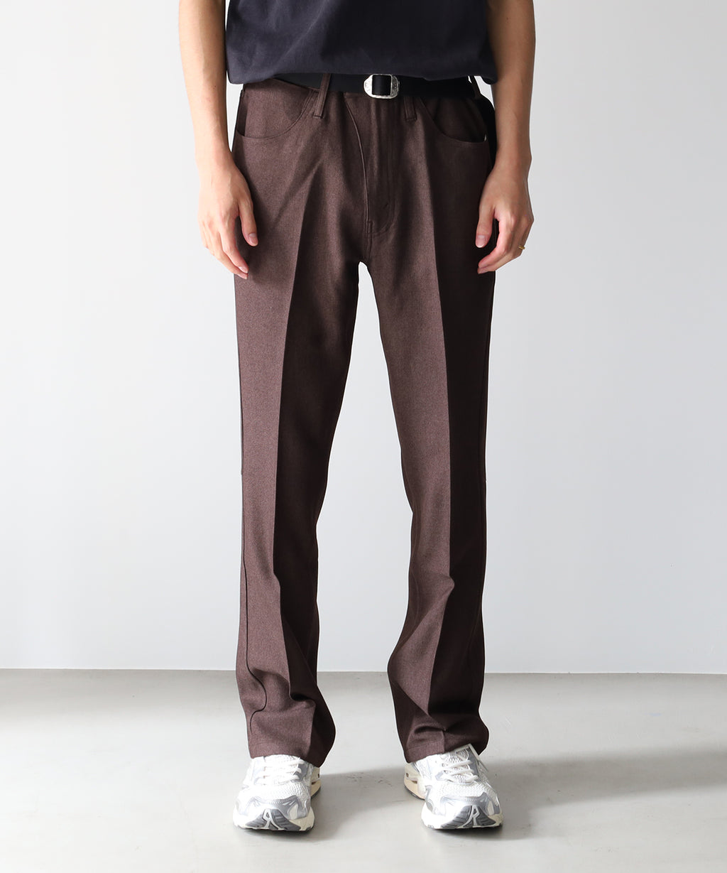 <<商品説明>>SandWaterr(サンドウォーター)の5P パンツ。細身で、程よくフレアの効いたブーツカット。杢調のポリエステルウールのツイル生地で作られたスタプレな雰囲気。カジュアルでありながら、シルエットの細さと、立体的なパターンが上品な雰囲気です。<<その他>>※商品画像は自然光にて撮影しています。デバイス環境等により色差がある場合が御座います。予めご了承下さいませ。※ショップガイドの規約を必ずご確認の上、お買い物をお楽しみ下さいませ。