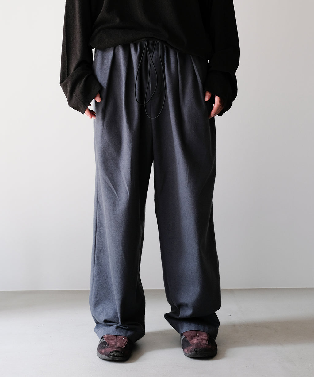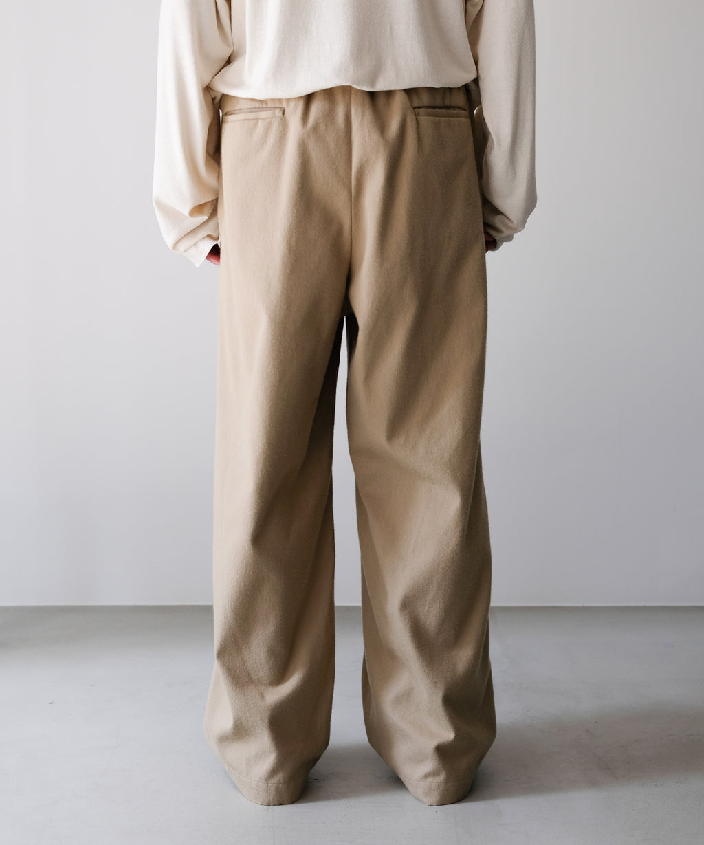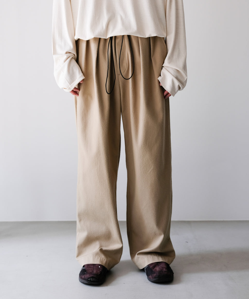 <<商品説明>>Blanc YM (ブランワイエム)のワイドパンツ。深めの2タック、ゆとりある腰回りからテーパードしたワイドシルエット。ウエストはアジャスターで調整可能で、アスレチックなディテールがクラシックなフォルムと相まってユニークな印象です。コットン、シルクのツイル生地で、起毛させた生地です。しなやかで、柔らかなタッチと、シルクの美しい艶が気品な印象です。<<生産国>>日本<<その他>>※商品画像は自然光にて撮影しています。デバイス環境等により色差がある場合が御座います。予めご了承下さいませ。※ショップガイドの規約を必ずご確認の上、お買い物をお楽しみ下さいませ。