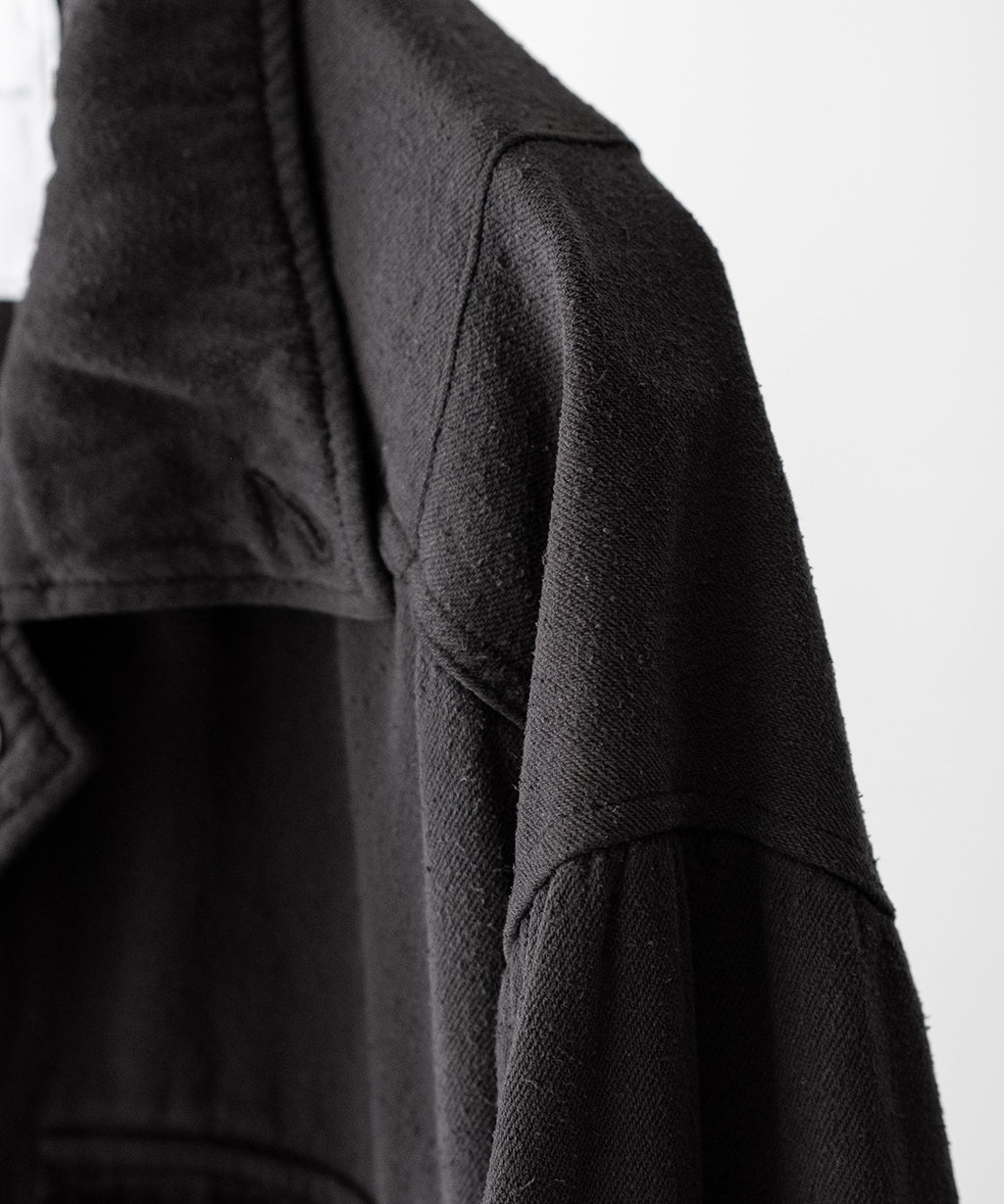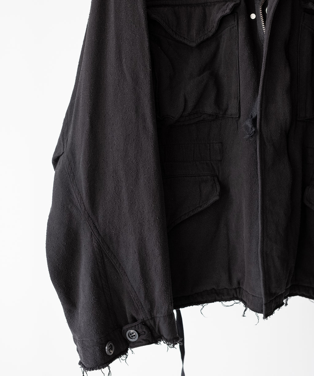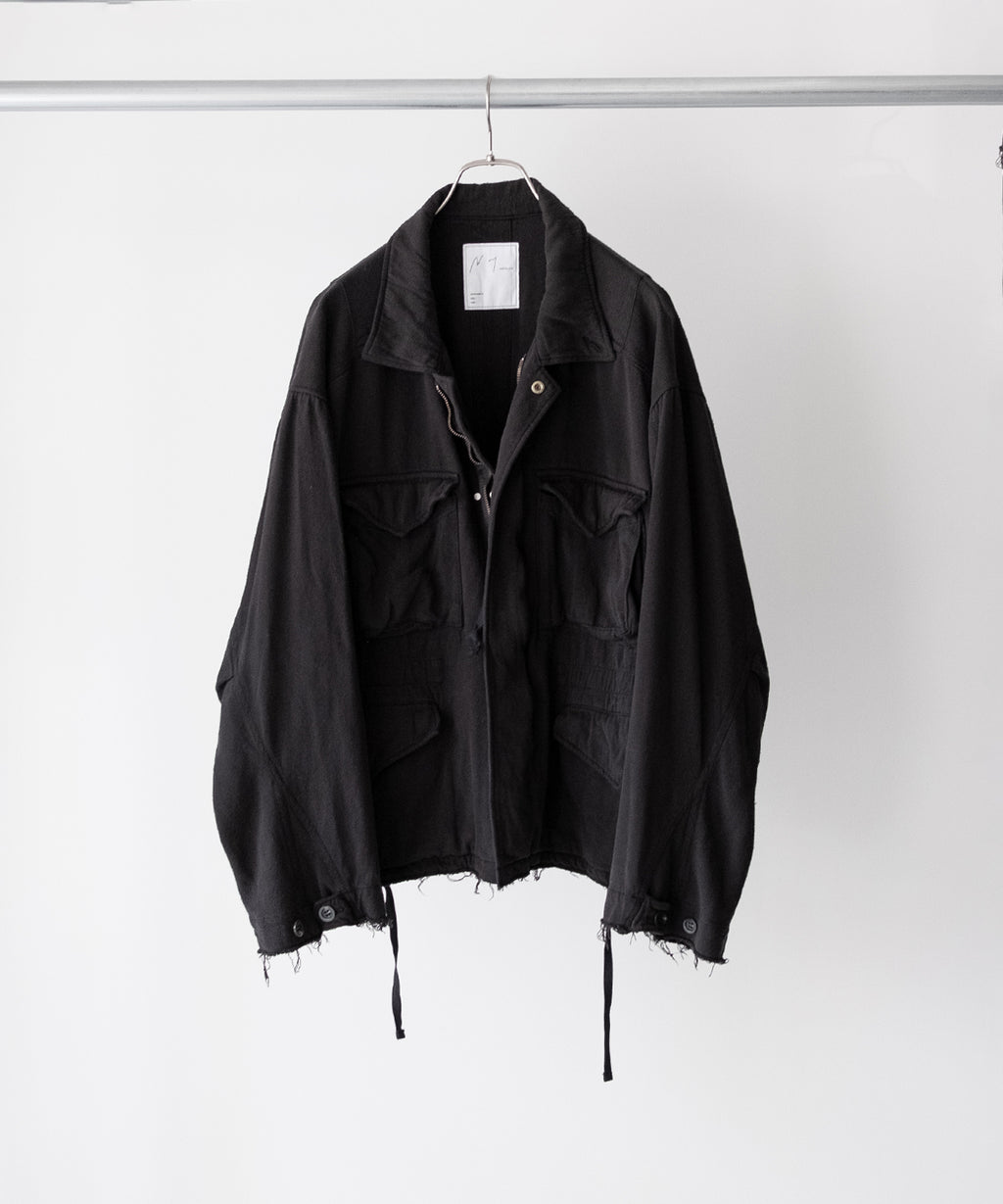 <<商品説明>>ANCELLM(アンセルム)のライトジャケット。フィールドジャケットベースに、アンセルムらしいワイドフォルムのリラックスシルエットです。シルクネップのツイルを製品染めし、BLACKはしっかりと濃く、各所の裾はカットオフ、表面のネップ感も相まって廃棄的な雰囲気と、シルクの柔らかな照りが上品にミックスされた唯一無二の風貌です。