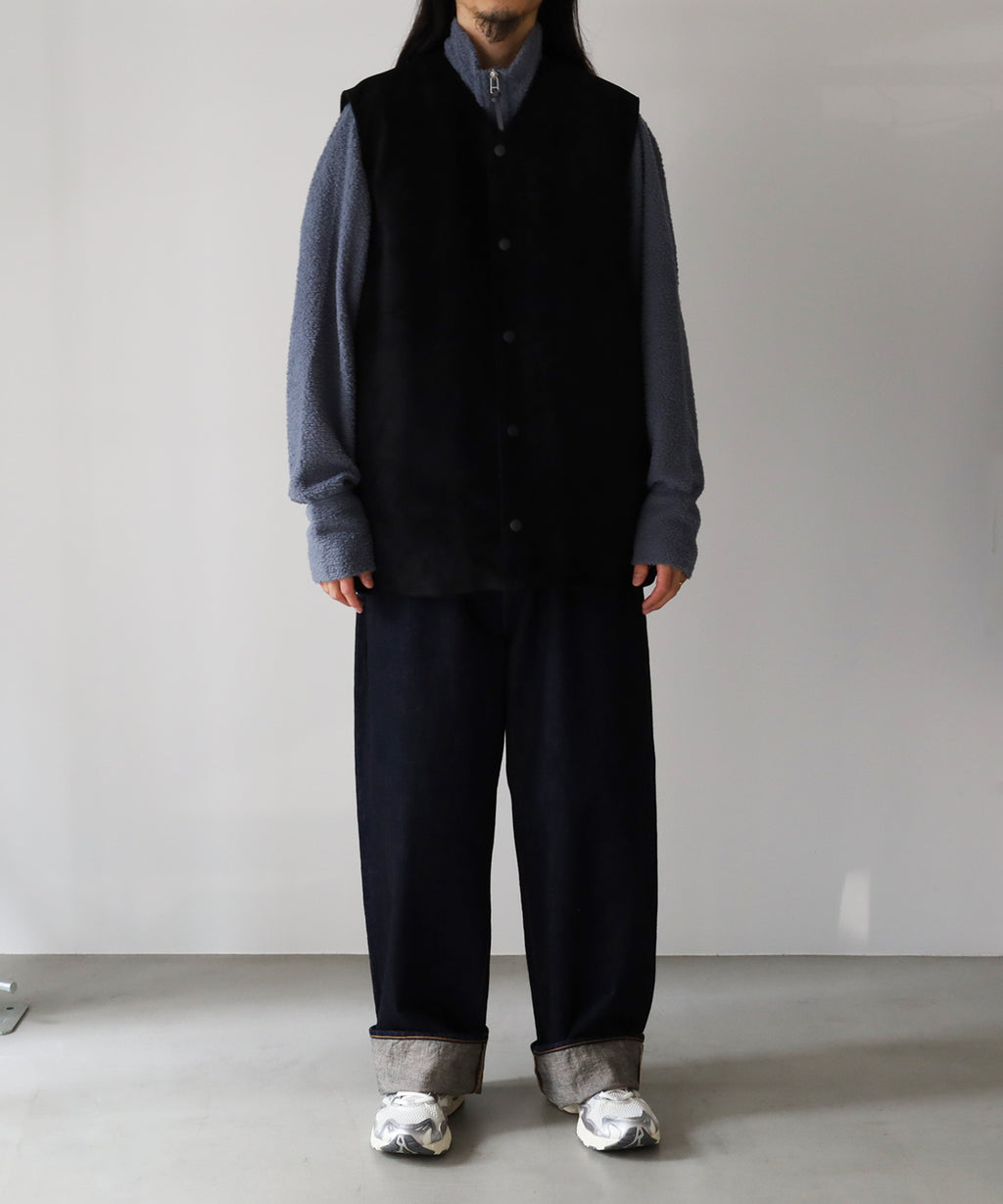 毛足の細かなピッグスウェードをフェイスに、ウール素材のボアを貼り合わせた肉厚感ある着心地とフォルムです。