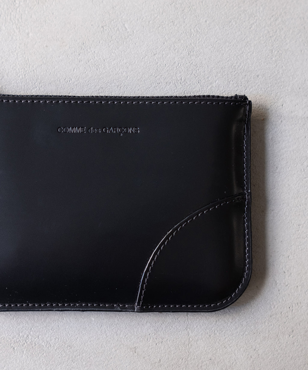 <<商品説明>>Wallet COMME des GARCONS(ウォレットコムデギャルソン)のポーチ。光沢感の強い上品でスタイリッシュな風合いのカウハイドで作られています。